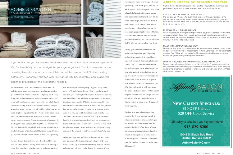 Simply KC Magazine Interview: Conquer Your Clutter Challenges Posted byshawnachildersFebruary 22, 2012October 15, 2020Posted inHome Organizing, In the Media, professional organizersTags:getting organized, Home Organizing, kansas city professional organizer, magazine interview, organizing, professional organizing Check out my interview with Simply KC Magazine. Click below for the pdf! Related